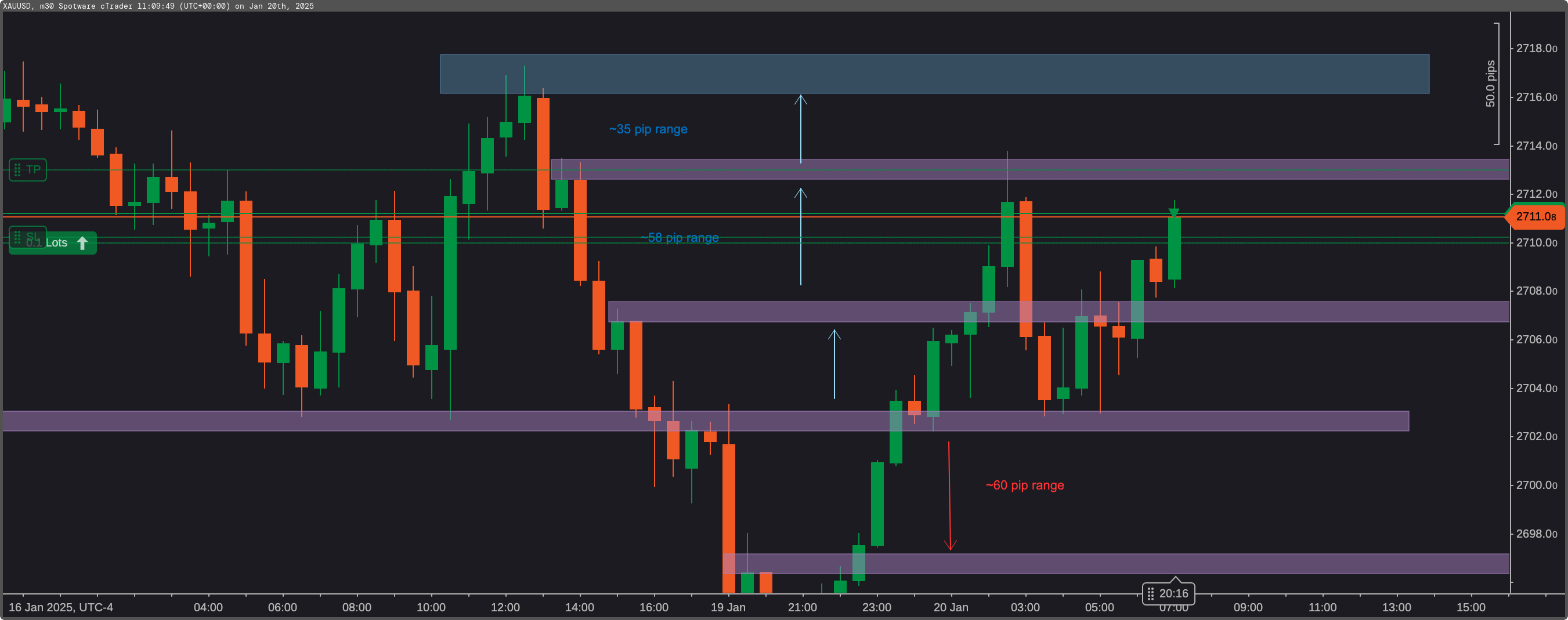 The markets opened with Gold showing promising movement. While GJ was trapped in a tight 17-pip range, Gold was making a push toward my predetermined levels. Like a surfer watching the perfect wave form, I waited for my moment.