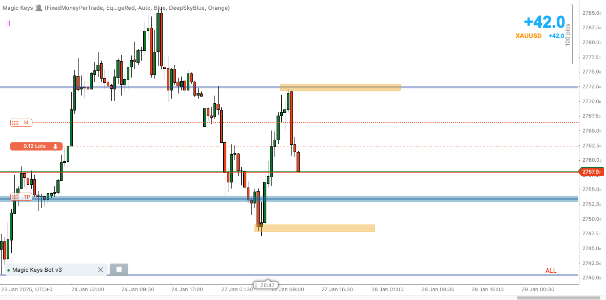 I started my trading session with clear intentions – maintain discipline and wait for high-probability setups. Gold showed significant volatility early in the session, presenting both opportunities and challenges. Using my Magic Keys trading tool helped me calculate risk precisely, a massive improvement from my early days of manual calculations.